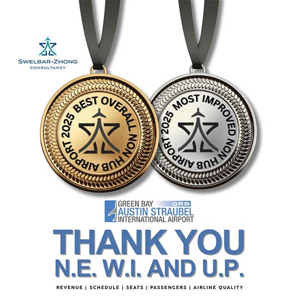 Green Bay Austin Straubel International Airport (GRB) has been named the 2025 Best Overall Nonhub Airport in the United States by Swelbar-Zhong Consultancy, leading aviation research and advisory firm recognized nationally for its rigorous, data-driven analysis of airport performance.